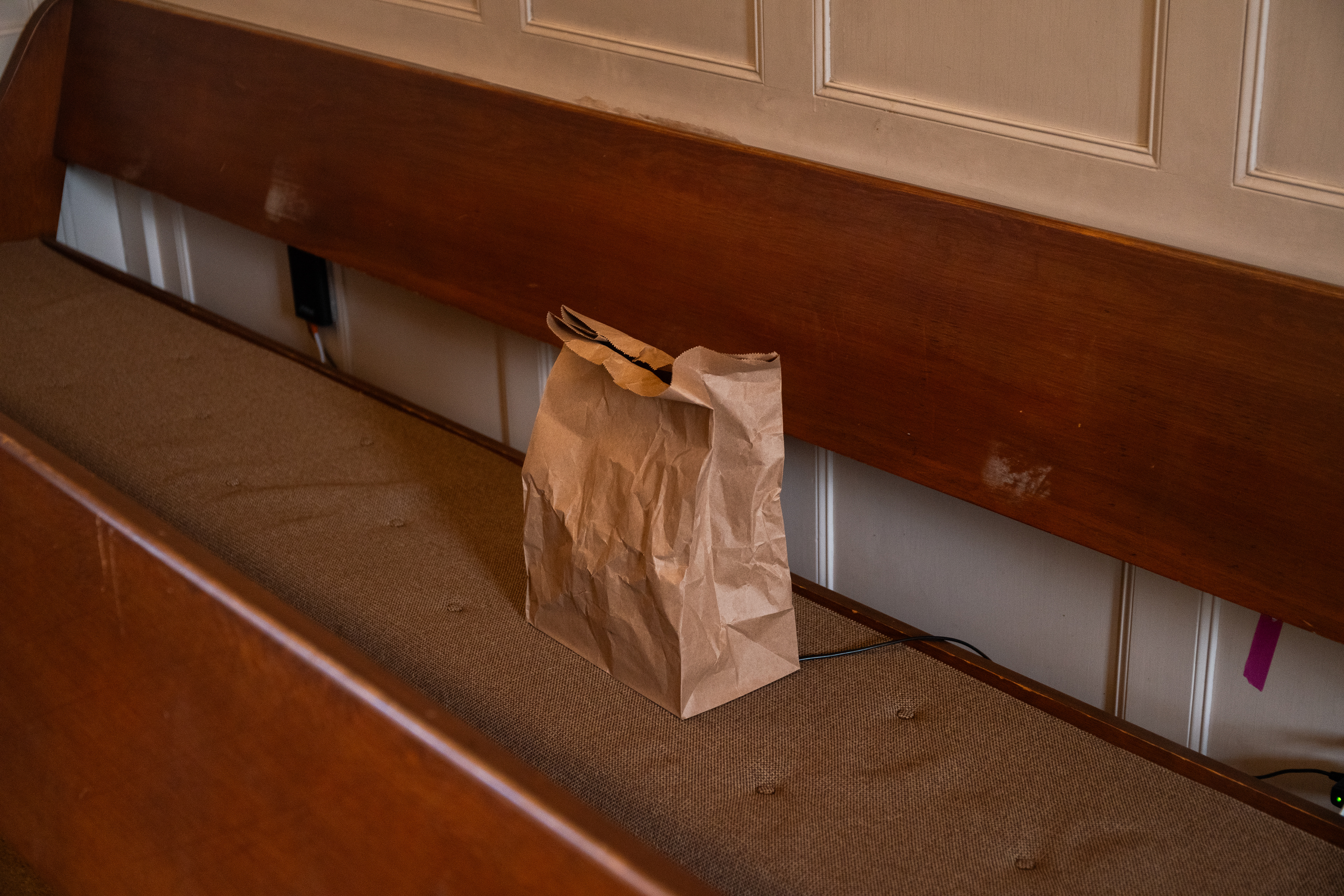 “Placeholder” holds a tender place and affords a rare occasion for being still. In the ongoing exhausting cycles of Instagram reels, news cycles, and business-as-usuals, “Placeholder” reminds us that, perhaps, we don’t have to be out or “on” all the time. Wandering across the meeting house gradually suspends my desire to discover and unearth what I’m “supposed to” understand in each art piece in a typical gallery visit. Instead, why don’t we consider everything and anything as art?—the ordinary, the unimportant, the things that we take for granted—not to place market value onto them or to reclaim their aesthetic beauty, but to tend to the quiet yet vibrant symbiosis between and around us that are always already underneath the day-to-day. I want to think with the preciousness of the mundane that consists of habits, (in)actions, and often-ignored things that saturate most parts of our days, when we take walks, have meals, or lay in bed. In this retrieval to the mundane, maybe we could be reminded of a blurred and buried childhood memory, we could listen in to a dynamic conversation that cannot be comprehended or even heard, or we could sense a deep gratitude and contentment for being alive in the present moment without wanting anything more.